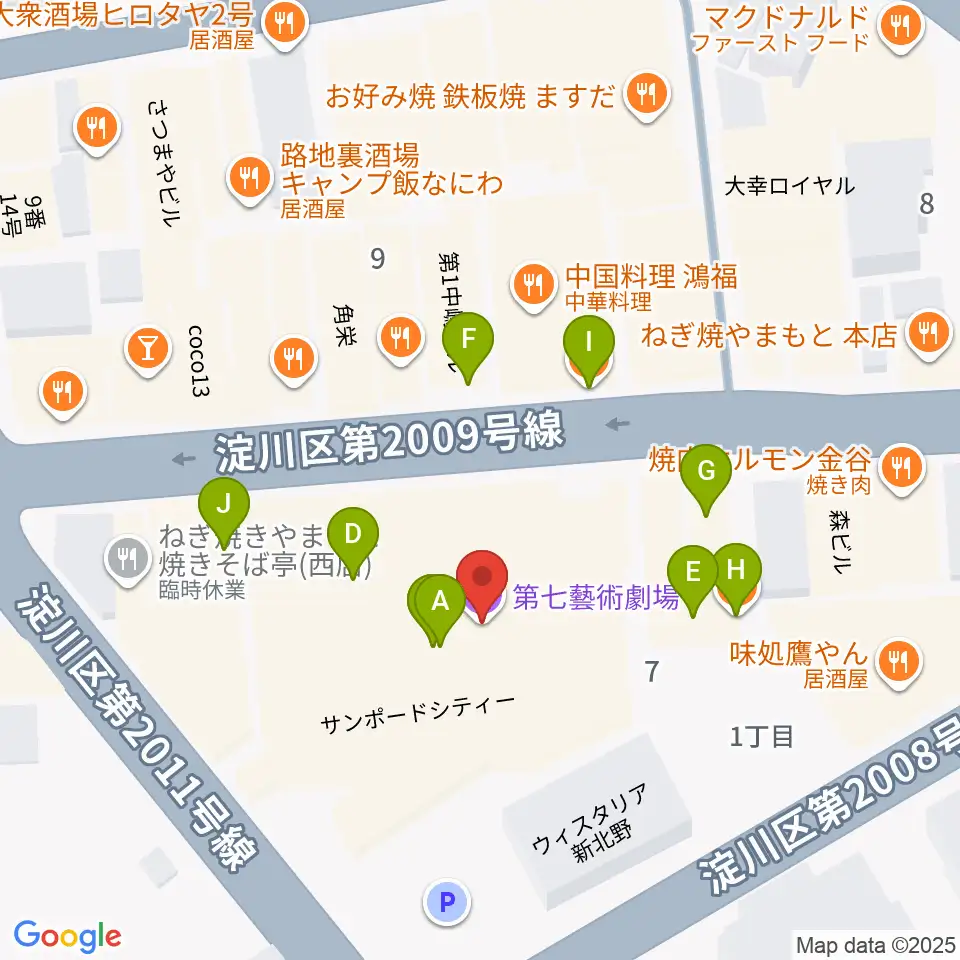 第七藝術劇場周辺のファミレス・ファーストフード一覧地図