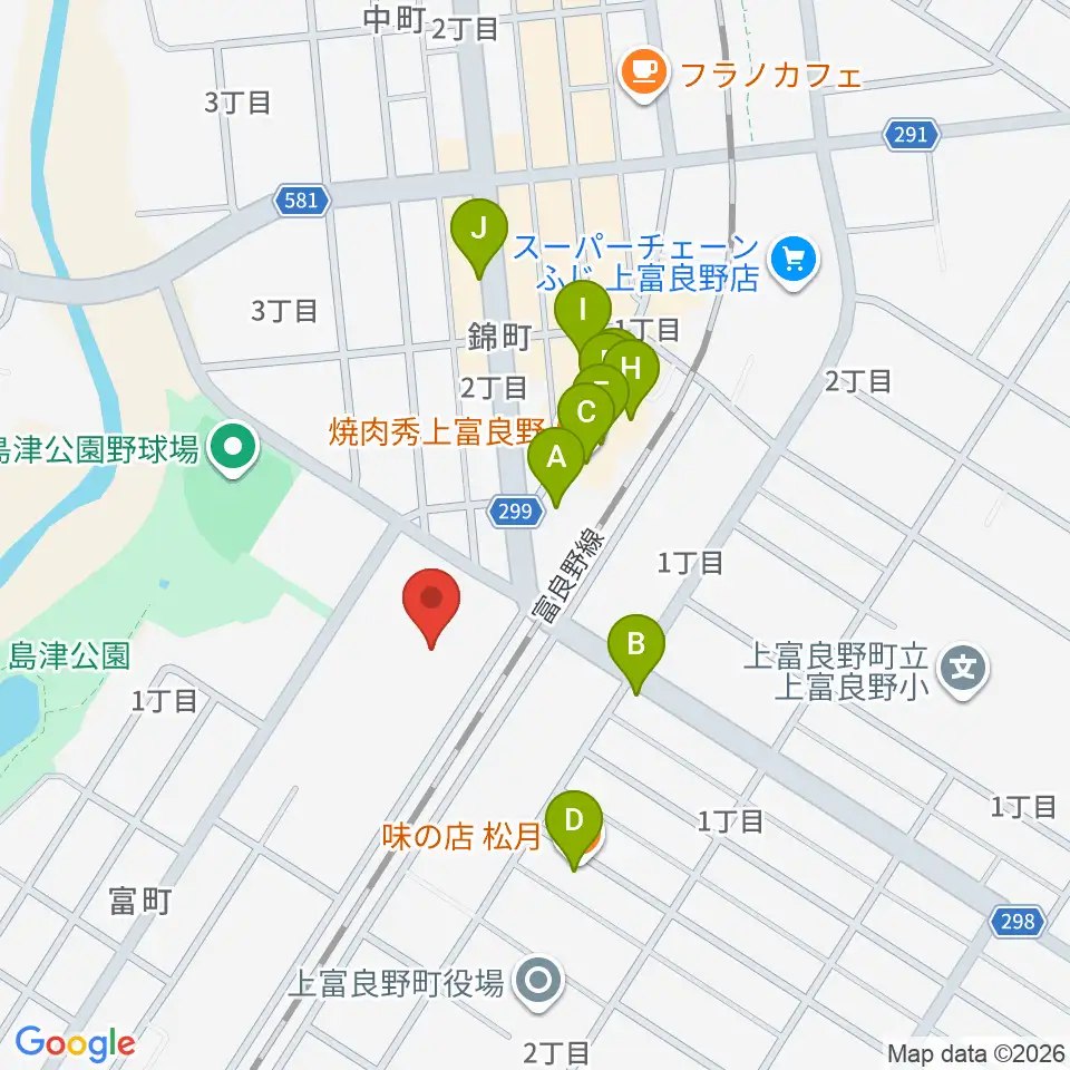 上富良野町郷土館周辺のファミレス・ファーストフード一覧地図