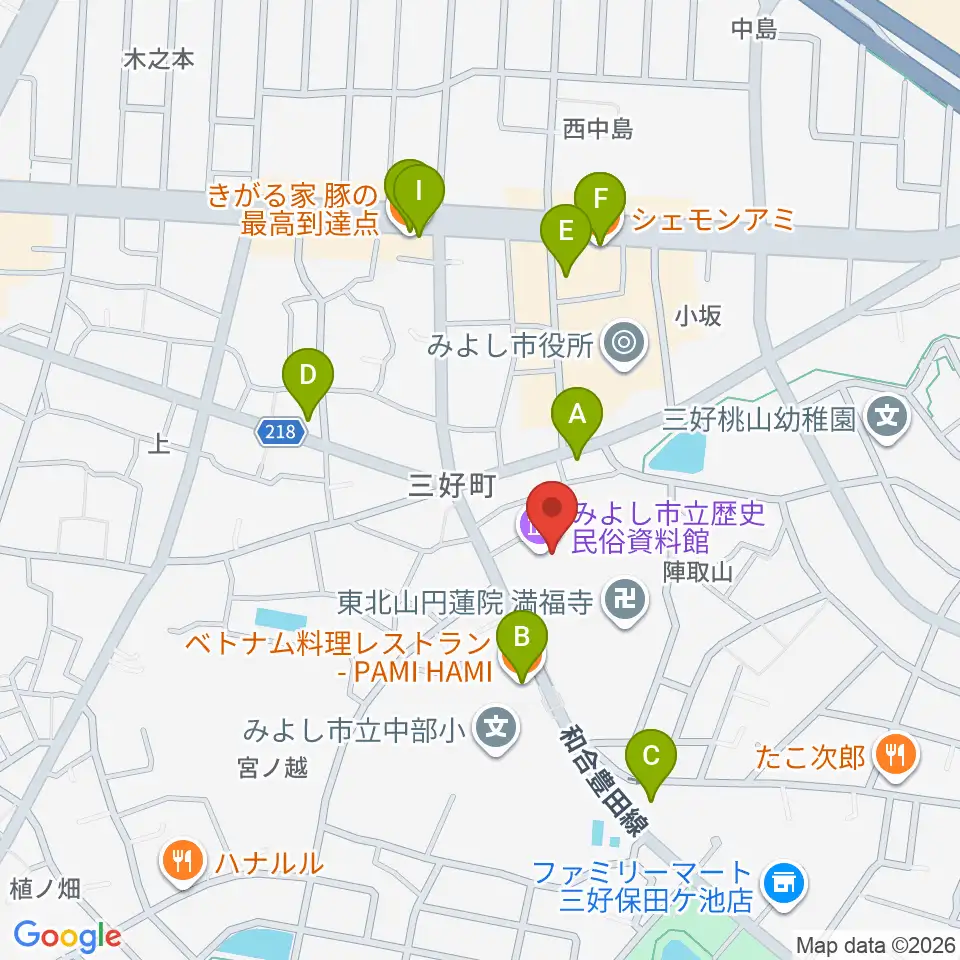 みよし市立歴史民俗資料館周辺のファミレス・ファーストフード一覧地図