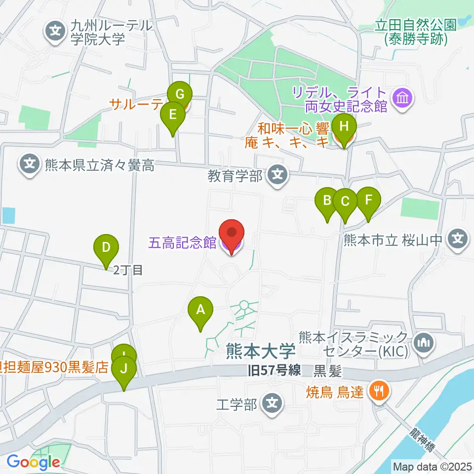 熊本大学五高記念館周辺のファミレス・ファーストフード一覧地図