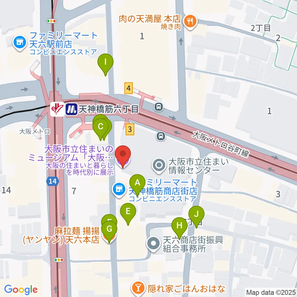 大阪くらしの今昔館周辺のファミレス・ファーストフード一覧地図