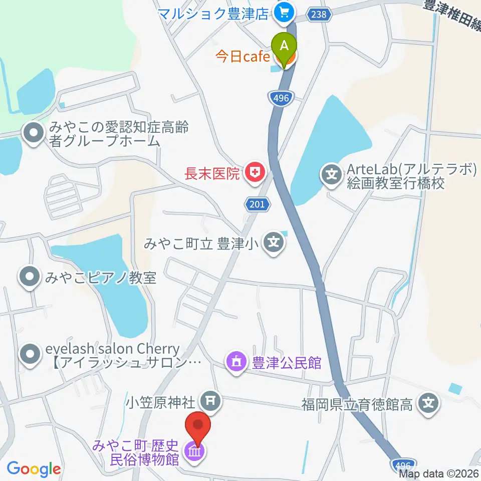 みやこ町歴史民俗博物館周辺のファミレス・ファーストフード一覧地図