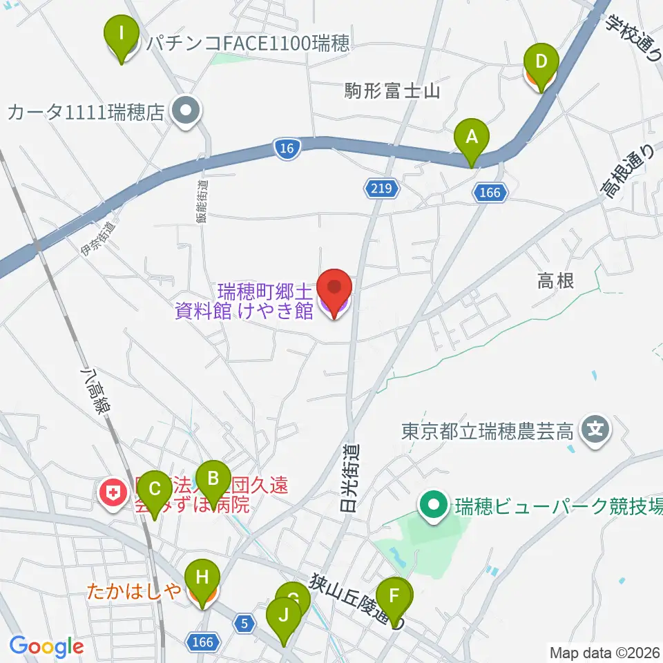 瑞穂町郷土資料館けやき館周辺のファミレス・ファーストフード一覧地図