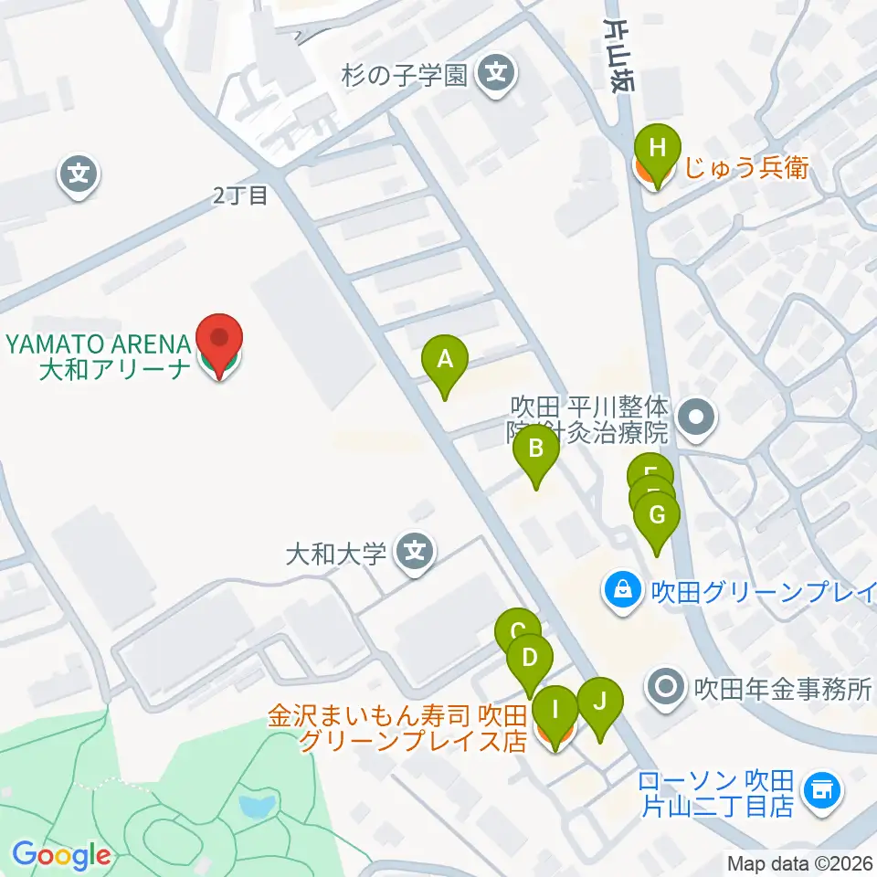 大和アリーナ周辺のファミレス・ファーストフード一覧地図