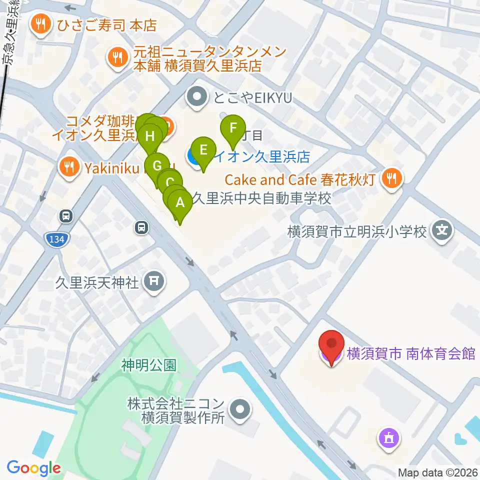 横須賀市南体育会館周辺のファミレス・ファーストフード一覧地図