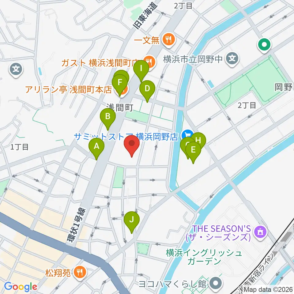 横浜市西スポーツセンター周辺のファミレス・ファーストフード一覧地図
