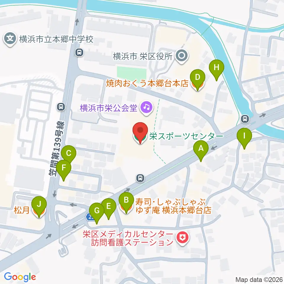 横浜市栄スポーツセンター周辺のファミレス・ファーストフード一覧地図