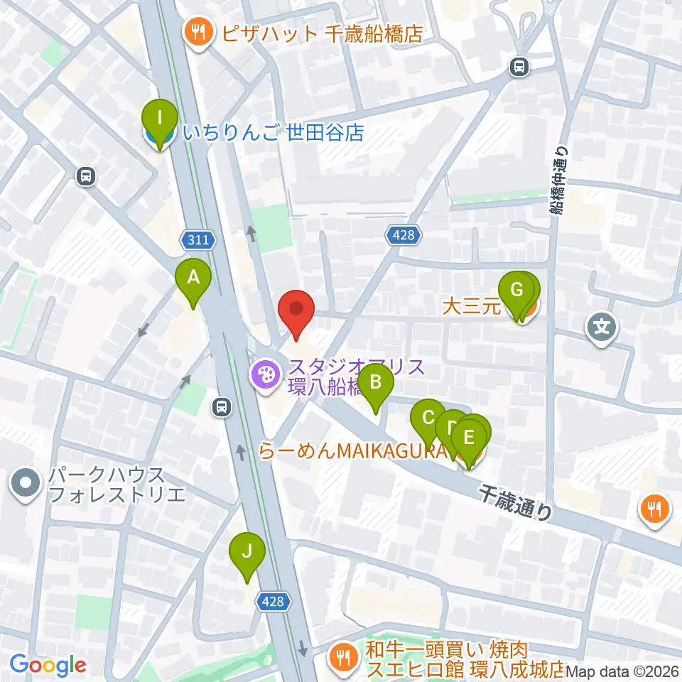 スターウッズ・レコーディングスタジオ周辺のファミレス・ファーストフード一覧地図