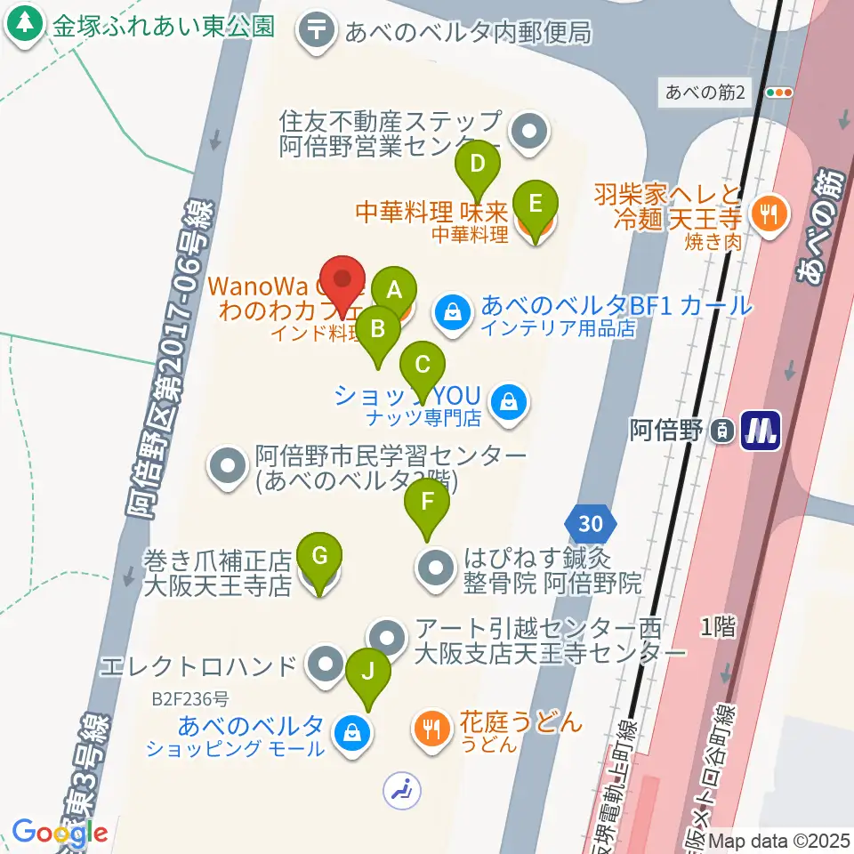 あべぷらんカルチャーわのわ周辺のファミレス・ファーストフード一覧地図