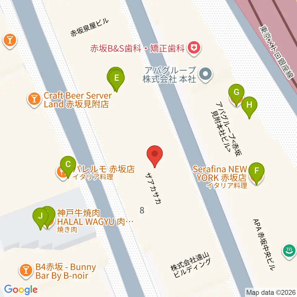 ヤマノミュージックサロン赤坂周辺のファミレス・ファーストフード一覧地図