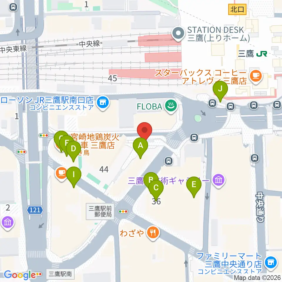 ヤマノミュージックサロン三鷹周辺のファミレス・ファーストフード一覧地図