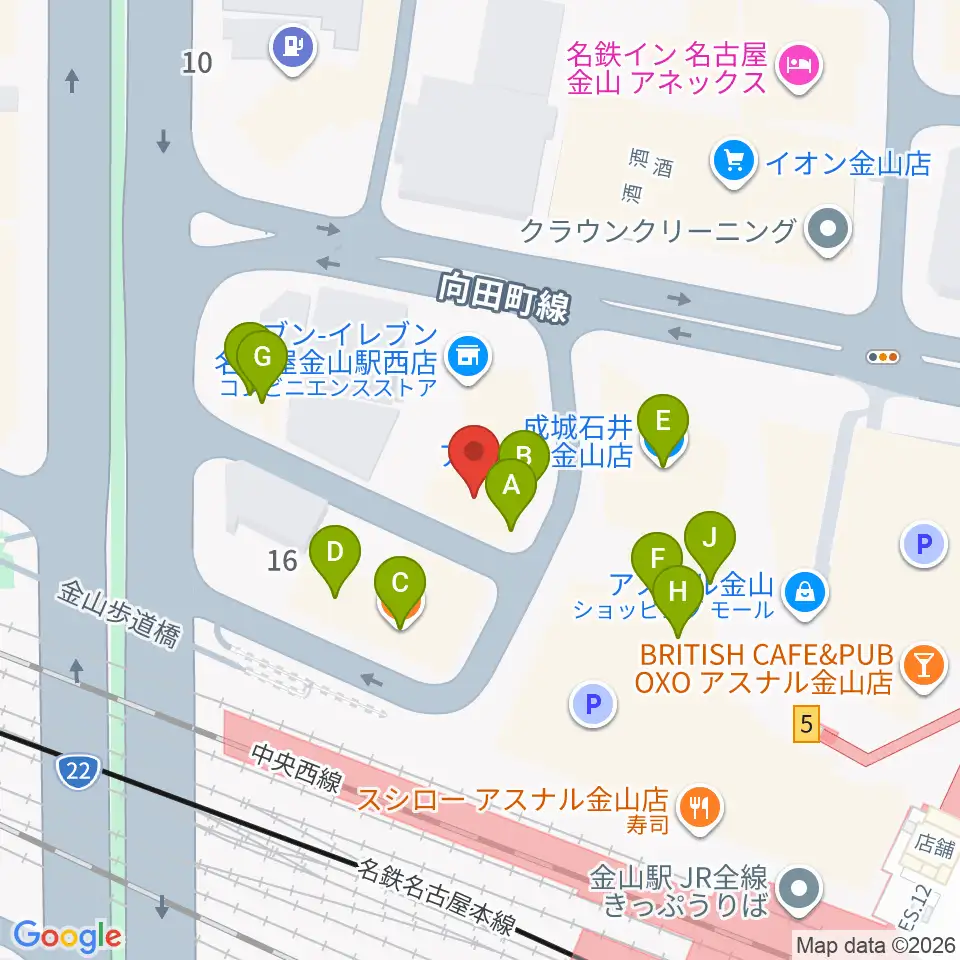 アズール・ギター教室周辺のファミレス・ファーストフード一覧地図