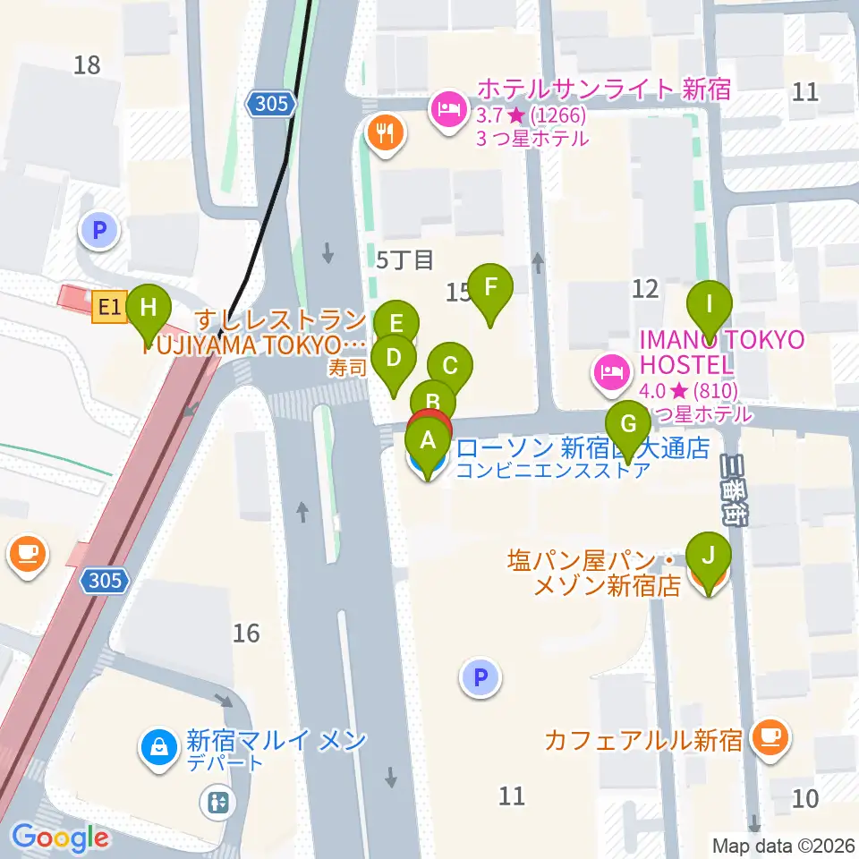 新宿SUNFACE周辺のファミレス・ファーストフード一覧地図