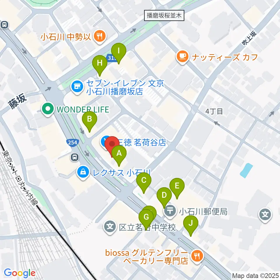 コムコムミュージックスクール周辺のファミレス・ファーストフード一覧地図