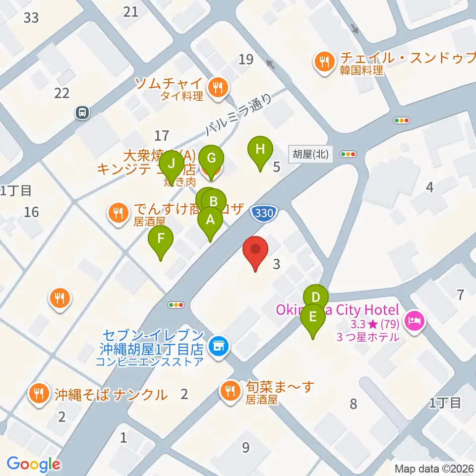普久原楽器周辺のファミレス・ファーストフード一覧地図