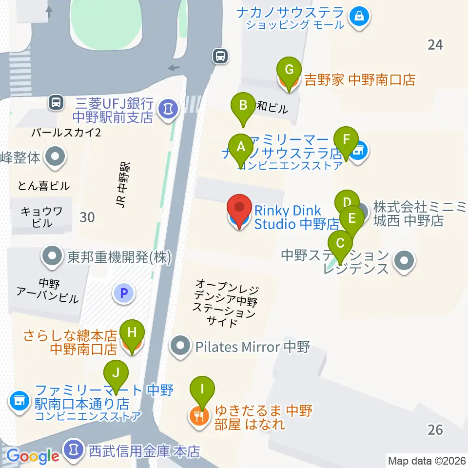 リンキィディンクスタジオ中野周辺のファミレス・ファーストフード一覧地図