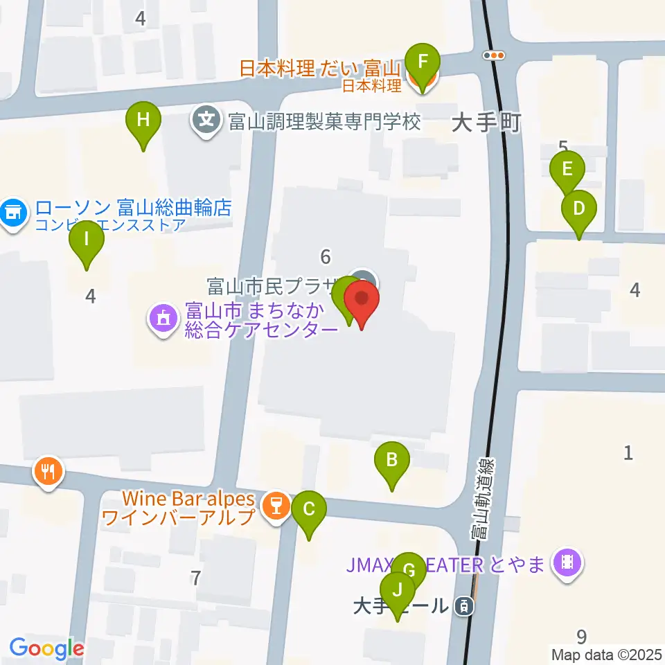富山市民プラザ周辺のファミレス・ファーストフード一覧地図
