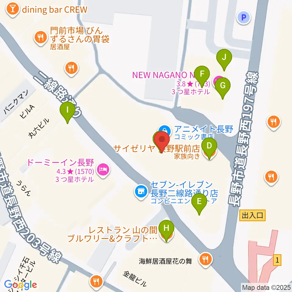長野ライブハウスJ周辺のファミレス・ファーストフード一覧地図