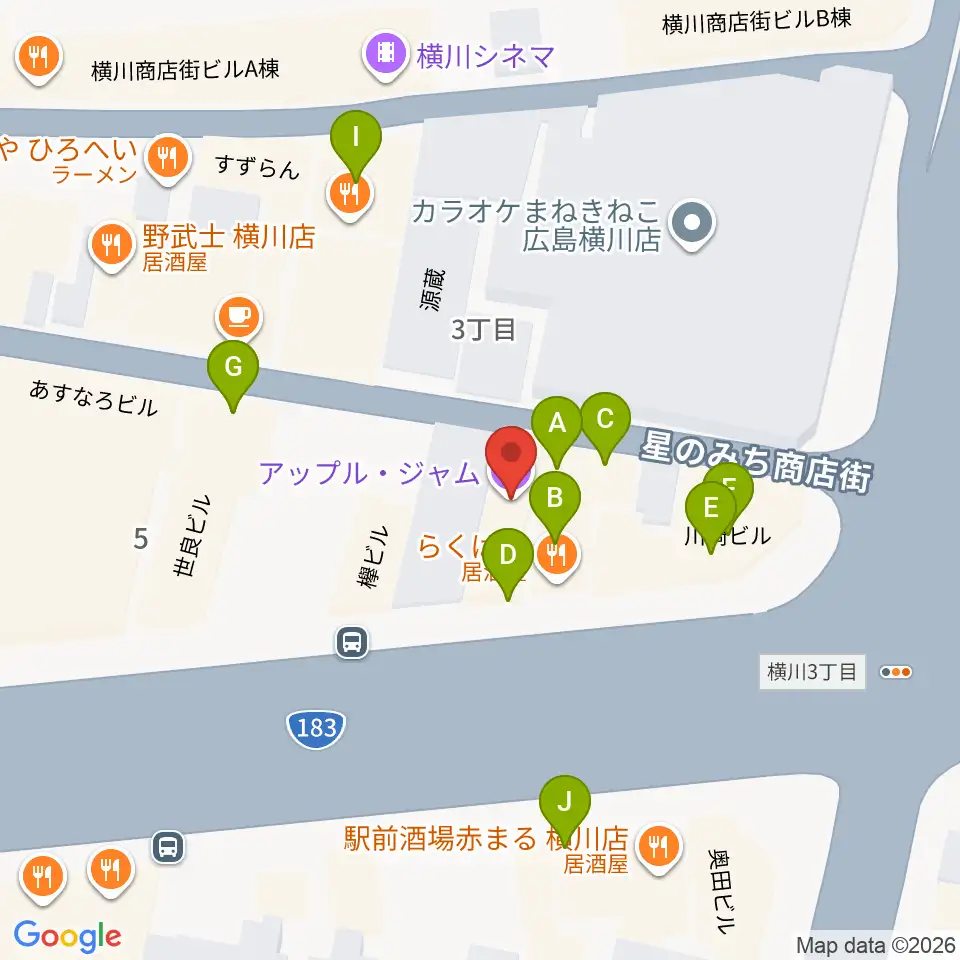 横川アップルジャム周辺のファミレス・ファーストフード一覧地図