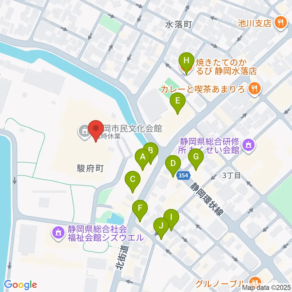 静岡市民文化会館周辺のファミレス・ファーストフード一覧地図