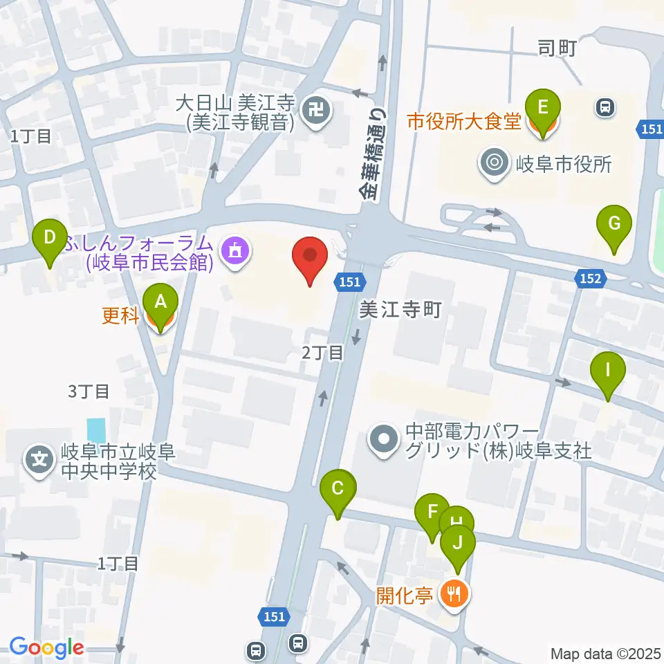 ぎふしんフォーラム周辺のファミレス・ファーストフード一覧地図