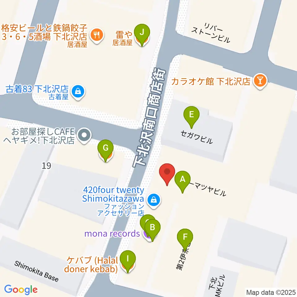 ガードアイランドスタジオ下北沢店周辺のファミレス・ファーストフード一覧地図