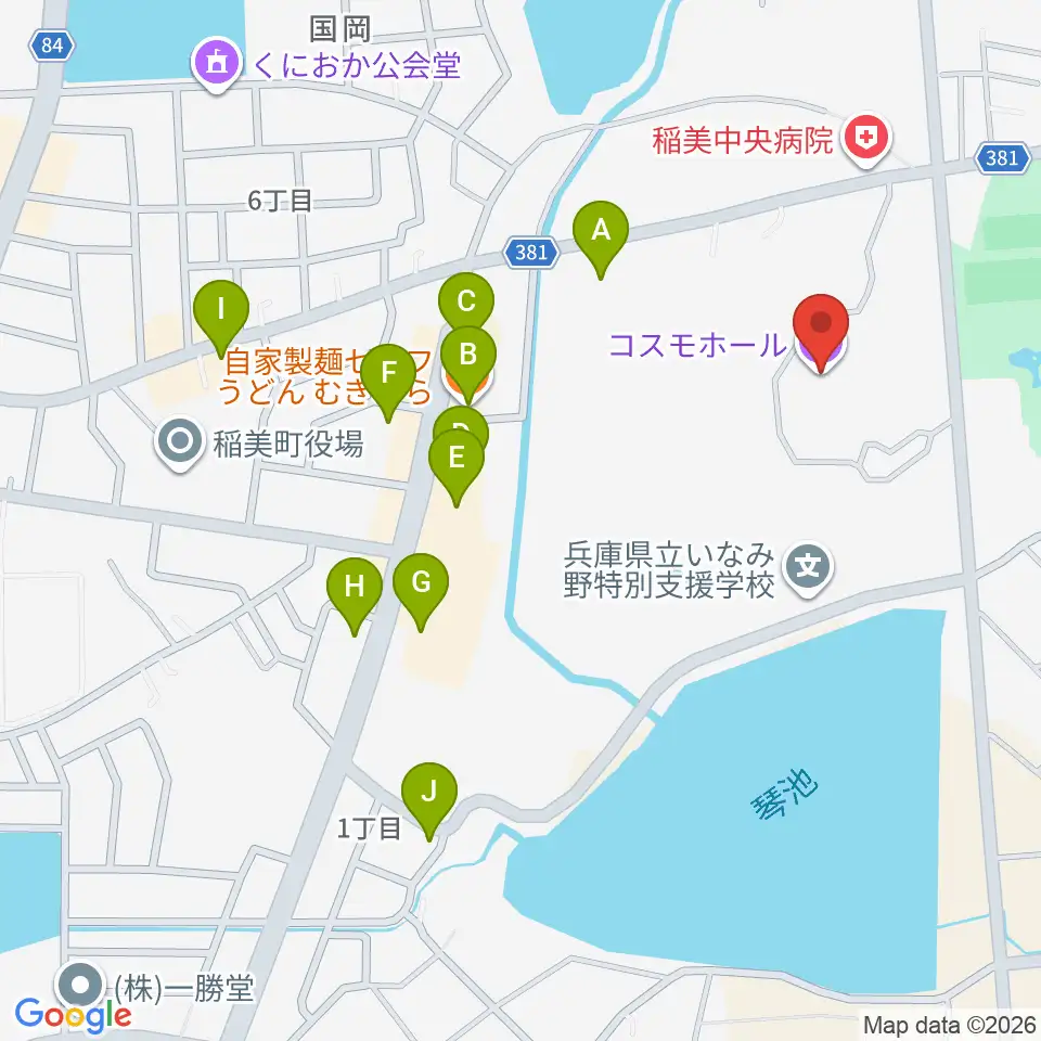 稲美町文化会館コスモホール周辺のファミレス・ファーストフード一覧地図