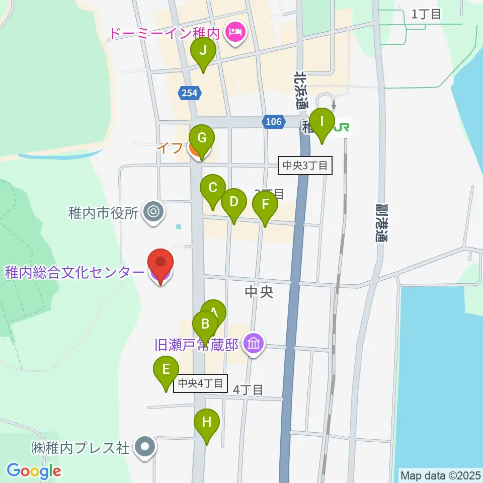 稚内総合文化センター周辺のファミレス・ファーストフード一覧地図