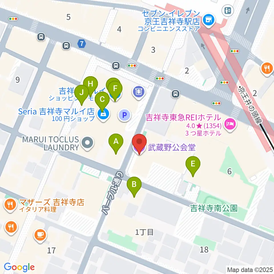 武蔵野公会堂周辺のファミレス・ファーストフード一覧地図