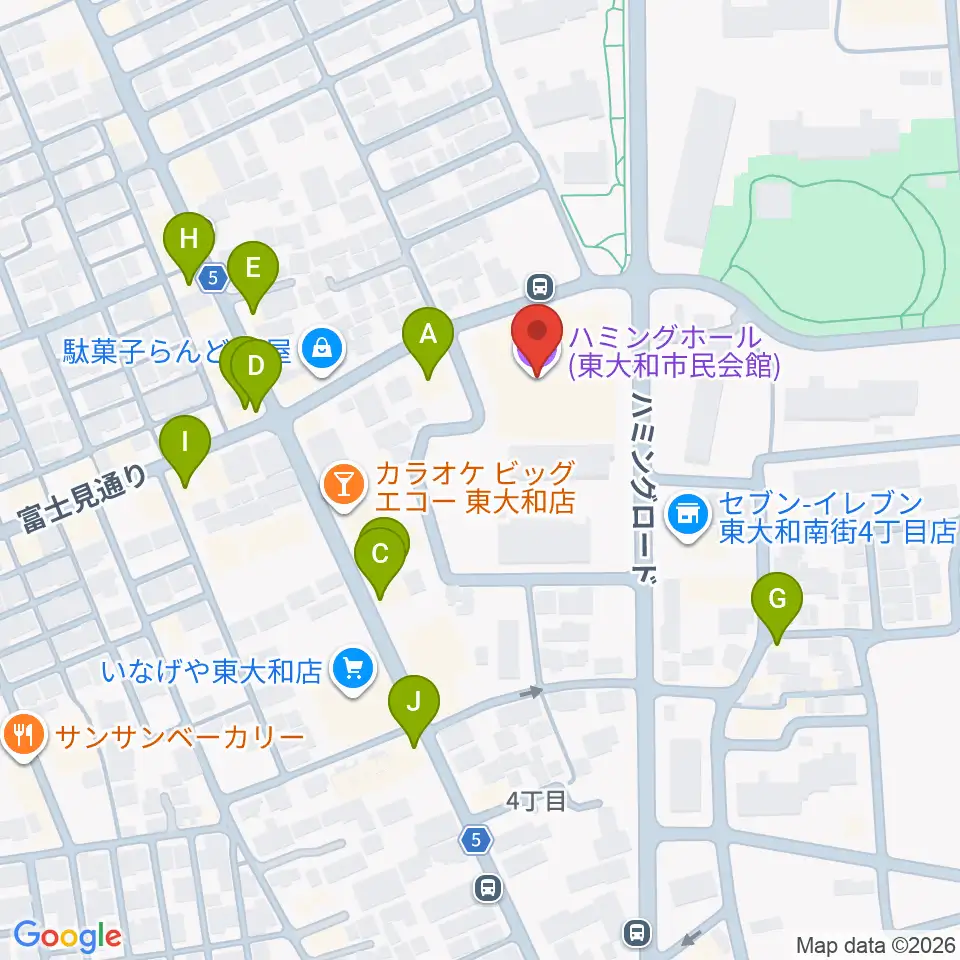 東大和市民会館ハミングホール周辺のファミレス・ファーストフード一覧地図