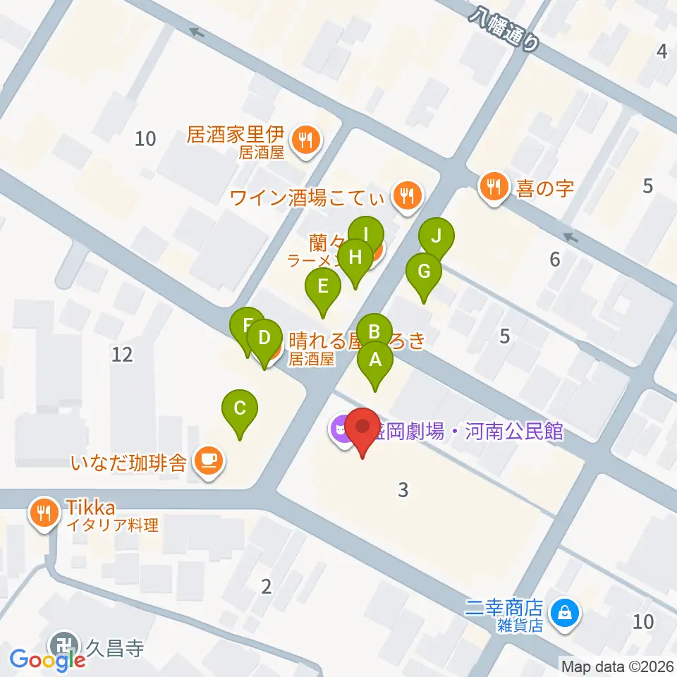盛岡劇場・河南公民館周辺のファミレス・ファーストフード一覧地図