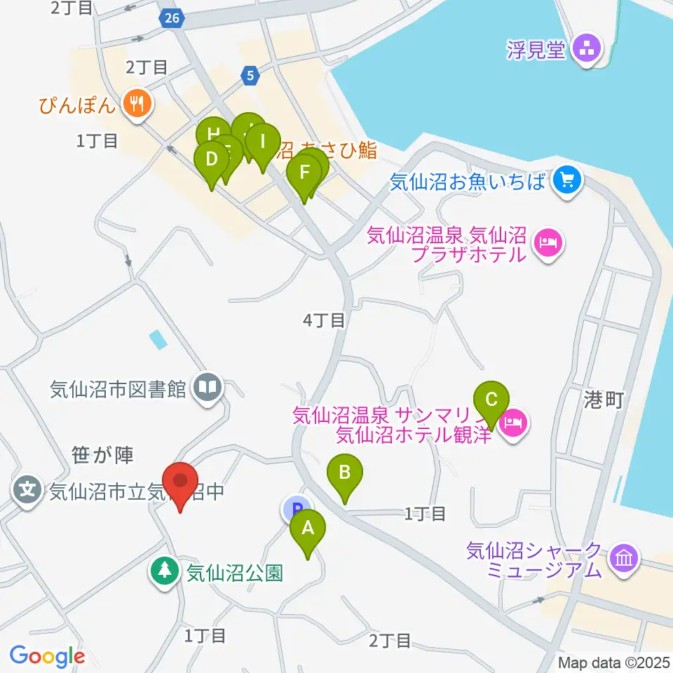 気仙沼市民会館周辺のファミレス・ファーストフード一覧地図