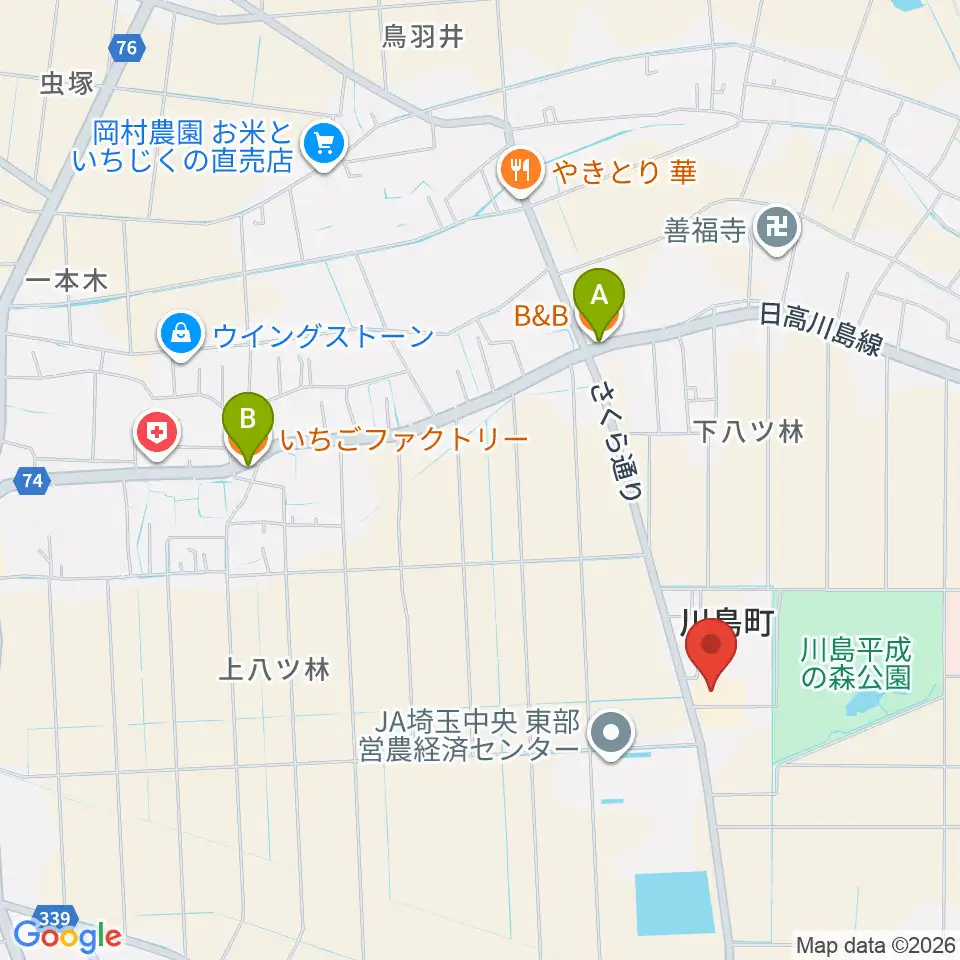 川島町民会館周辺のファミレス・ファーストフード一覧地図