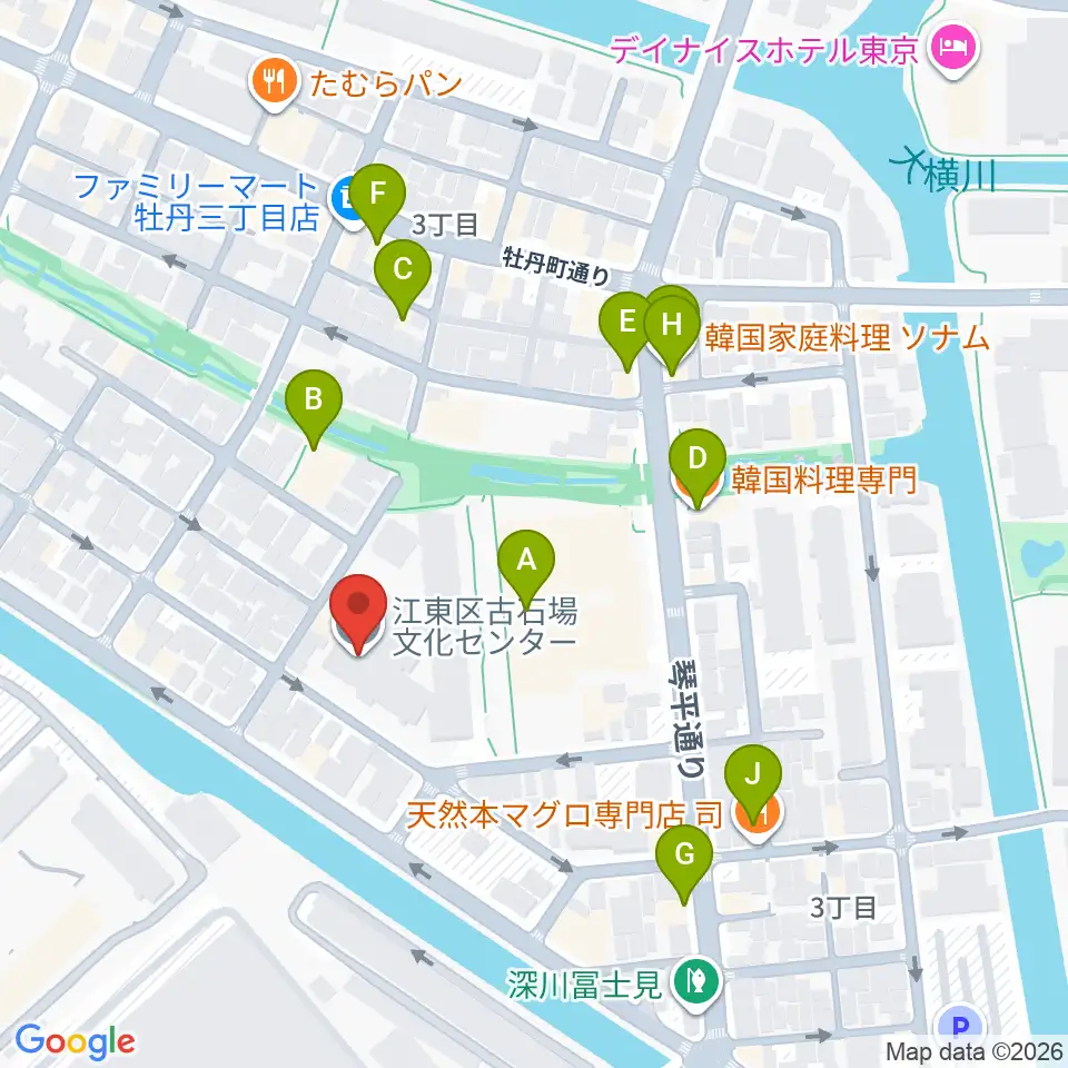 古石場文化センター周辺のファミレス・ファーストフード一覧地図