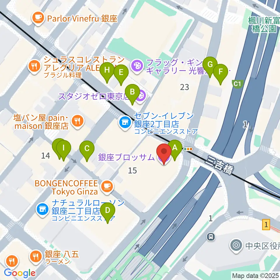 銀座ブロッサム 中央会館周辺のファミレス・ファーストフード一覧地図