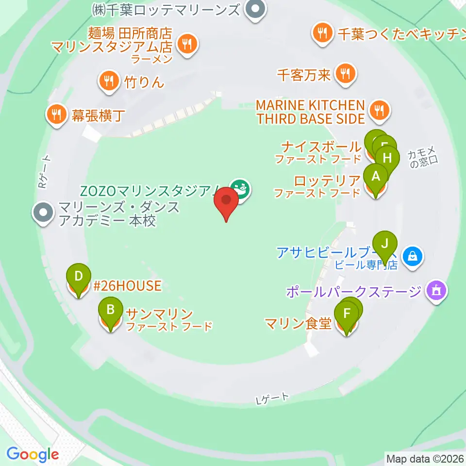 ZOZOマリンスタジアム周辺のファミレス・ファーストフード一覧地図