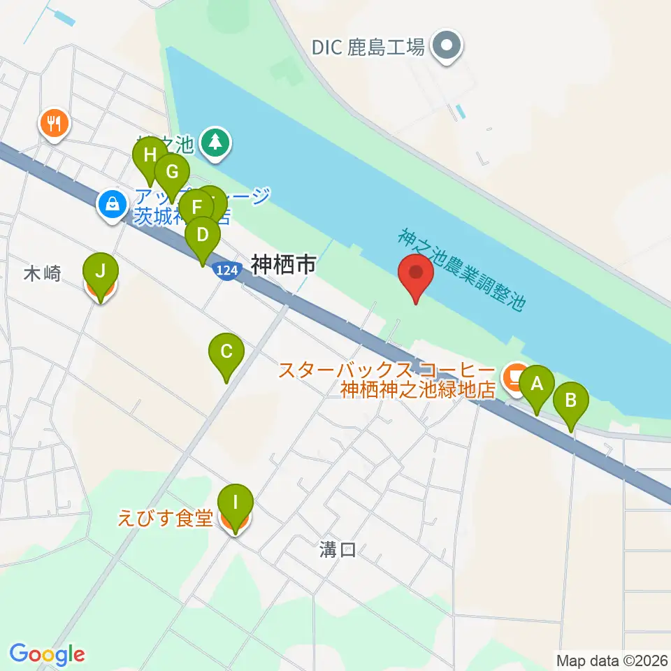 神栖市文化センター周辺のファミレス・ファーストフード一覧地図