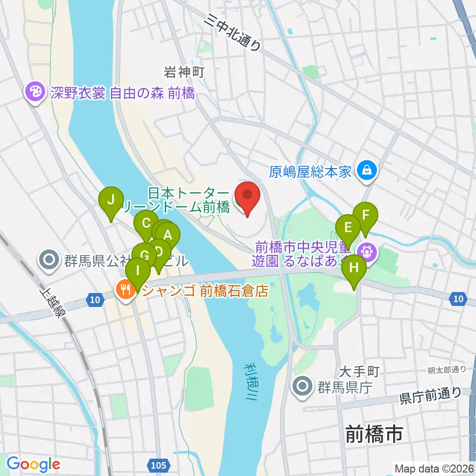日本トーターグリーンドーム前橋周辺のファミレス・ファーストフード一覧地図