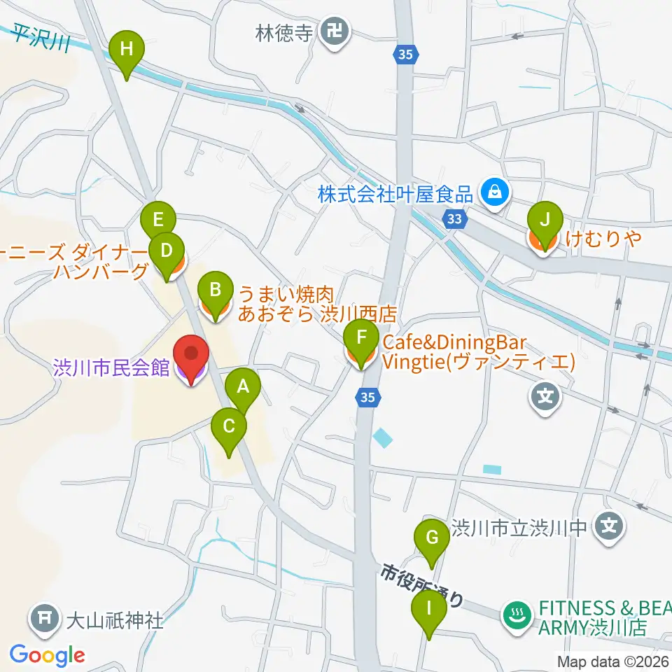 渋川市民会館周辺のファミレス・ファーストフード一覧地図