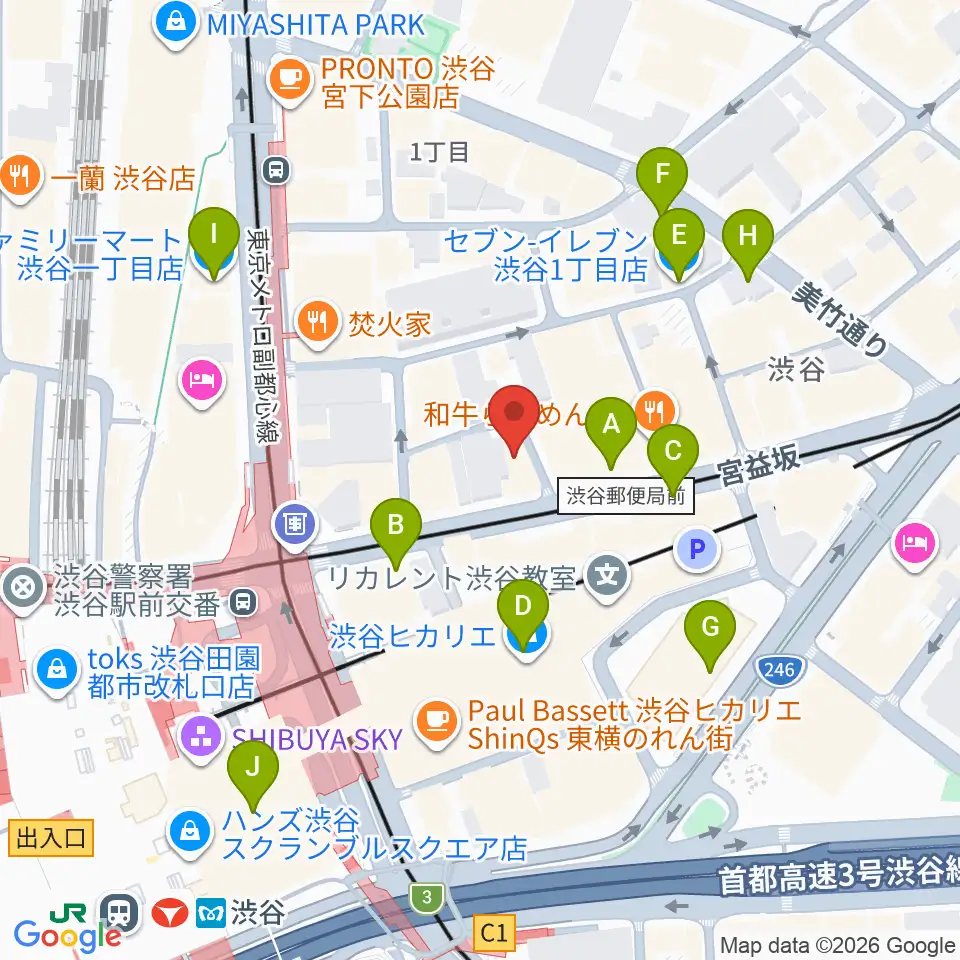 パワフルヴォイスヴォーカルスクール渋谷校周辺のコンビニエンスストア一覧地図