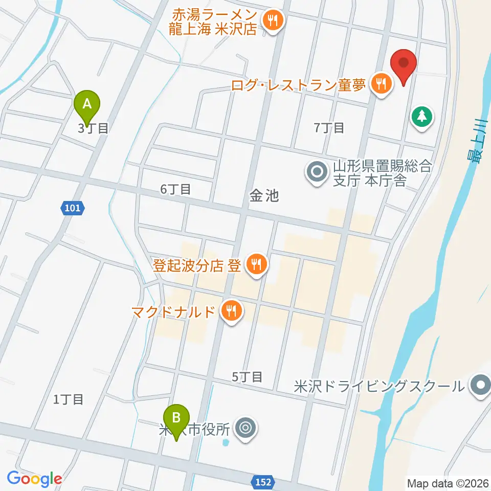 音楽アズム舘 米沢店周辺のコンビニエンスストア一覧地図