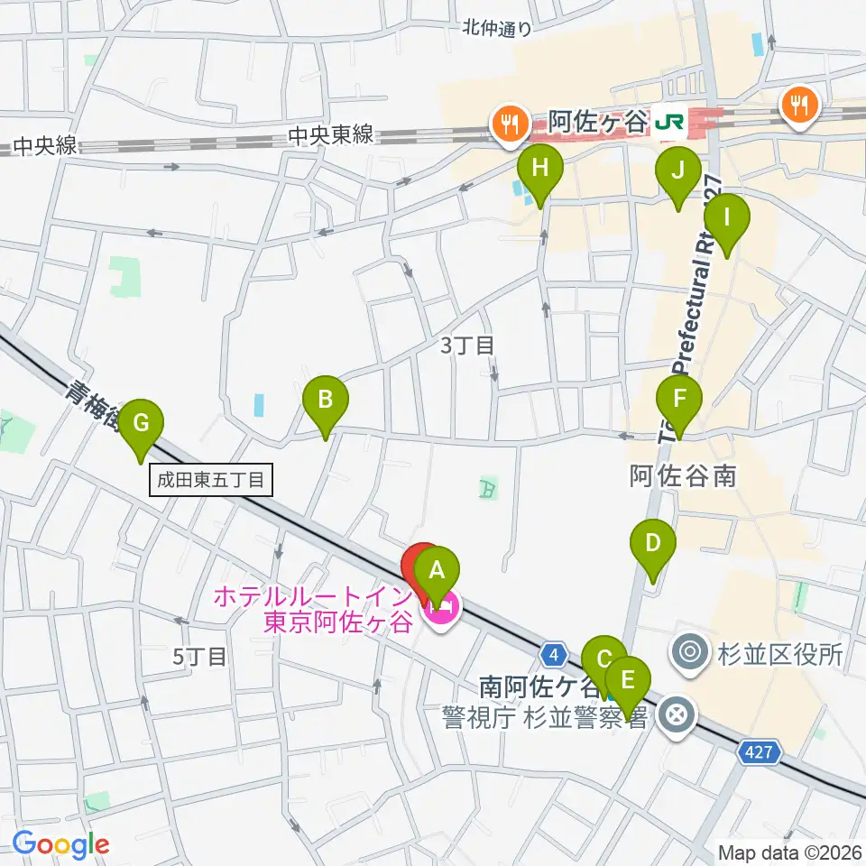 あさがやドラム周辺のコンビニエンスストア一覧地図