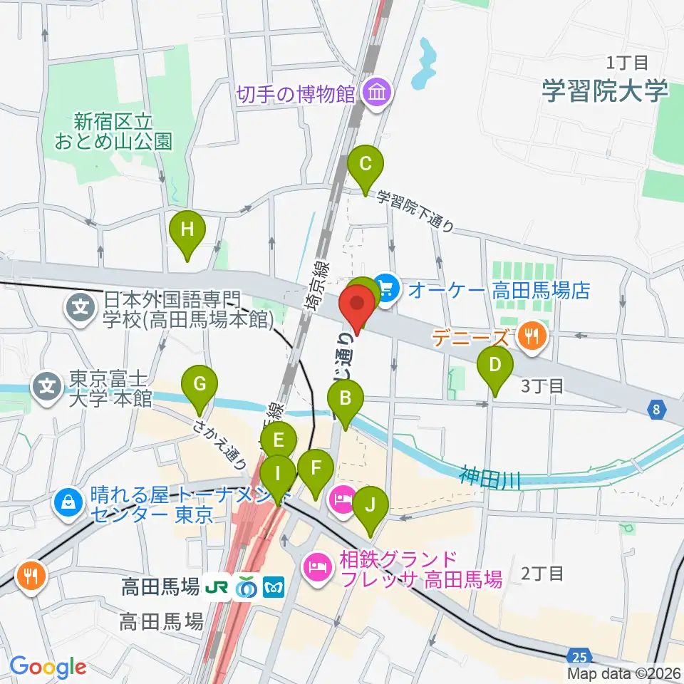 サウンドスタジオノア 高田馬場店周辺のコンビニエンスストア一覧地図