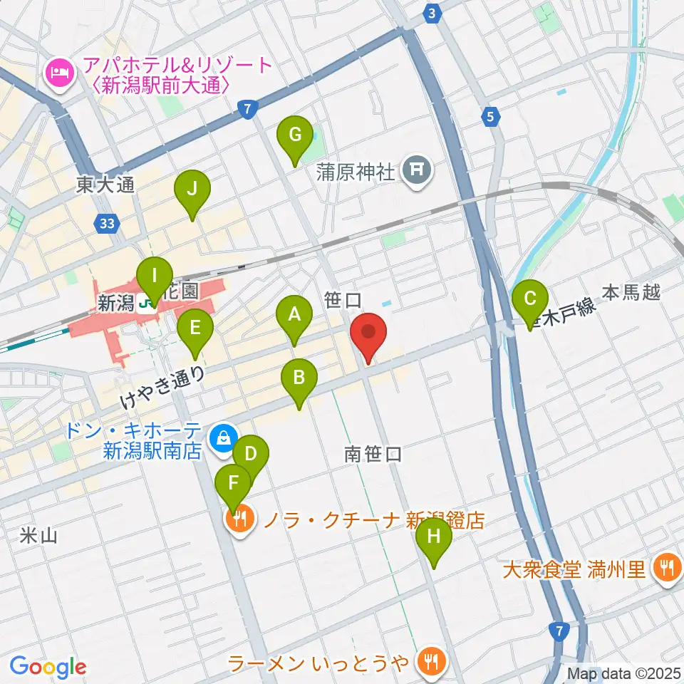 新潟中古楽器センター 新潟ショールーム周辺のコンビニエンスストア一覧地図