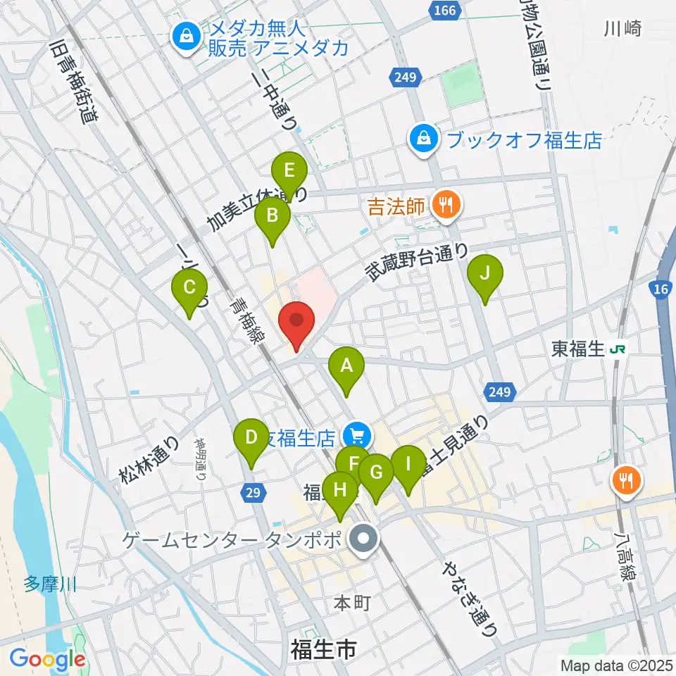 宮地楽器 福生センター周辺のコンビニエンスストア一覧地図