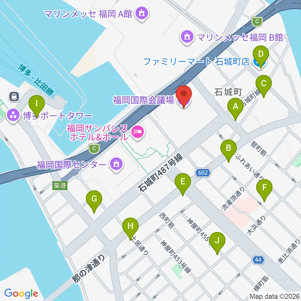 福岡国際会議場周辺のコンビニエンスストア一覧地図