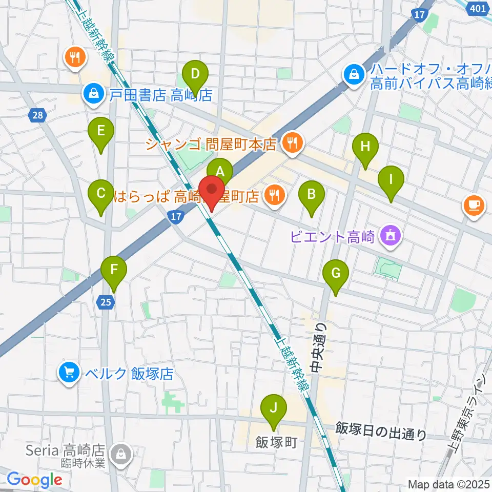 輸入ピアノセンター高崎周辺のコンビニエンスストア一覧地図