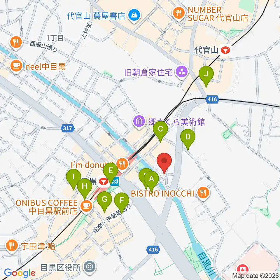 スズキ・メソード中目黒教室周辺のコンビニエンスストア一覧地図