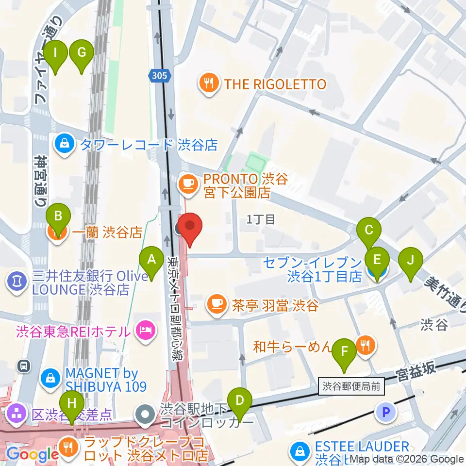 クロサワバイオリン渋谷本店周辺のコンビニエンスストア一覧地図