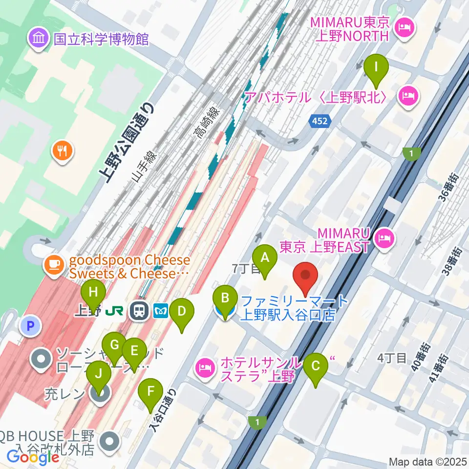 シアーミュージック 上野校周辺のコンビニエンスストア一覧地図
